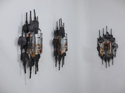 Coppia di applique in metallo e vetro sabbiato, Francia 1970