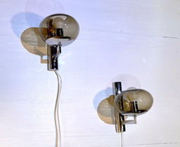 Coppia di applique cromate con vetro fumé, Italia, anni '70