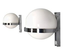 Coppia di applique vintage in ottone e globo in vetro "lp1 lampione", Italia 1954