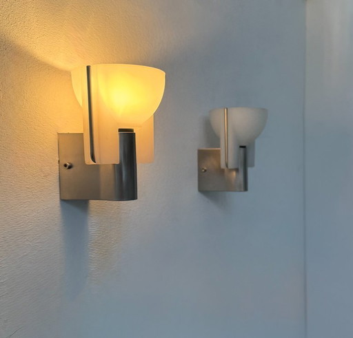 Coppia di applique Targetti in vetro e metallo cromato, 1970