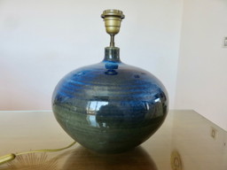 Splendida lampada in ceramica blu iridescente con sfumature verdi, Francia, circa 1960.