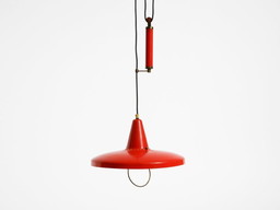 Lampada a sospensione in alluminio rosso, stile Mid-Century Modern, regolabile in altezza, Italia, 1950