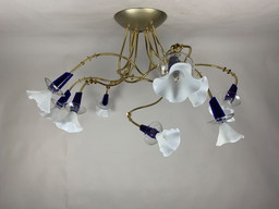 Lampadario italiano a 8 luci in porcellana e ottone in stile neoclassico, anni '60