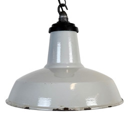 Lampada a sospensione industriale in smalto grigio, anni '60