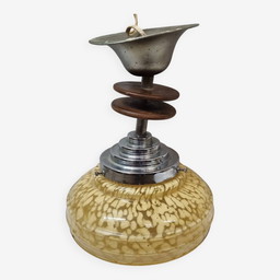 Lampadario vintage degli anni '70 in metallo giallo e vetro spaziale, design italiano