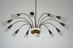 Grande lampadario italiano Sputnik in ottone con vetro satinato, metà secolo, anni '50