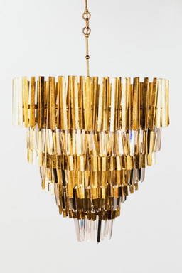 Lampadario grande in ottone e vetro di Murano in stile moderno di metà secolo