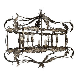 Grande lampada a sospensione "Lotus" d'epoca in vetro fumé e ottone - stile Hollywood Regency