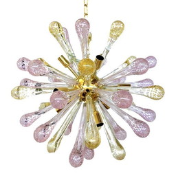 Lampadario Sputnik in vetro di Murano con oro e rosa con gocce d'aria