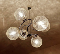 Lampada a sospensione vintage in cromo e vetro, lampada a sospensione a cascata in stile spaziale