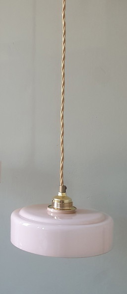 Lampada a sospensione Art Déco vintage in vetro opalino rosa pastello.