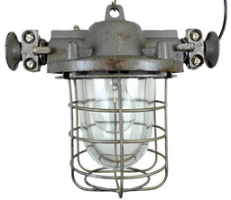 Lampada a sospensione industriale in ghisa a gabbia, anni '60
