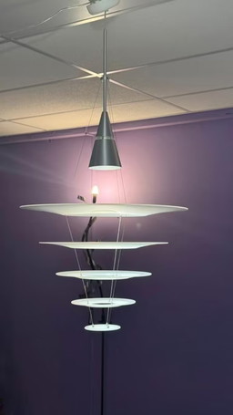 Lampada a sospensione in plastica spaziale con supporto in metallo
