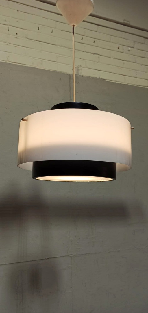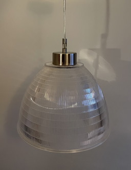 Lampada a sospensione vintage in cromo e plexiglass satinato - anni '70