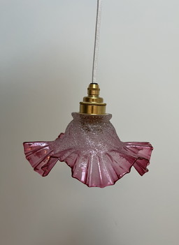 Lampada a sospensione vintage rosa - vetro opalino con bordo decorativo satinato
