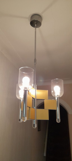 Lampadario italiano in vetro e ottone, stile Mid-Century Modern, anni '60