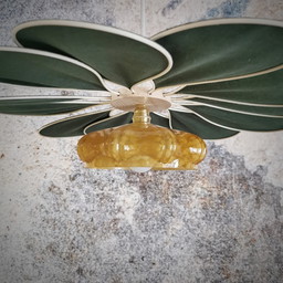 Lampada a sospensione anni '70 in vetro ambrato con attacco dorato