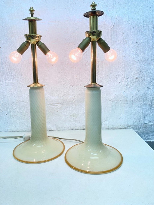 2 basi per lampade da tavolo in vetro, design anni '60/'70