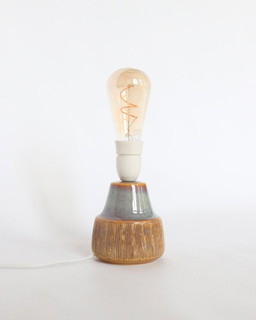 Lampada da tavolo riciclata realizzata da un vaso di design di metà secolo, senza fili e con sorgente luminosa a LEDLampada da tavolo riciclata realizzata da un vaso di design di metà secolo, senza fili e con sorgente luminosa a LED