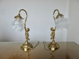 1 lampada da scrivania in bronzo Art Nouveau con airone