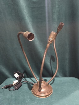 Lampada da tavolo in ottone retrò chic, globo rotondo vintage riciclato e strutturato