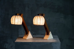 Lampade da tavolo in ottone e pietra rosa, anni '70