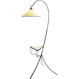 Lampada da terra a treppiede in ferro battuto con ripiano, metà secolo, Italia anni '60