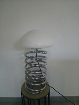 Lampada da tavolo iconica Space Age degli anni '70: fungo opalino e spirale cromata