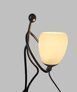Lampada da tavolo dal design giocoso – Metallo figurativo e vetro opaco