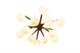 Angelo Lelli. Lampadario in ottone e opalino. Contemporaneo.