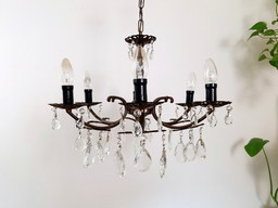 Lampadario antico francese in ottone con gocce di cristallo, lampadario da sala da pranzo in stile barocco a 6 luci