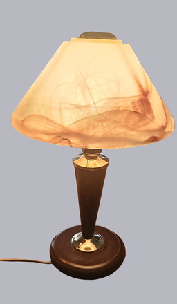 Lampada da tavolo vintage anni '70 - Paralume in vero vetro e marmo - Effetto legno e ottoneLampada da tavolo vintage anni '70 - Paralume in vero vetro e marmo - Effetto legno e ottone