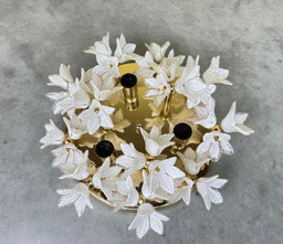 Lampada a sospensione vintage in vetro satinato. Forma floreale e ondulata.