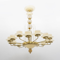 Lampadario italiano in ottone e vetro artistico, anni '70