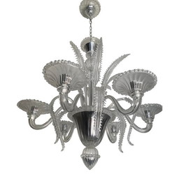 Vintage - Danimarca - Lampada da soffitto a 6 bracci - teak - metallo - vetro opalino - anni '60