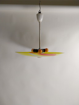 1 x plafonniere 1960's PL09 in geel en rood met bewerkte glasbaan.  Uit voormalig Tsjechoslowakije 1 x plafonniere 1960's PL09 in geel en rood met bewerkte glasbaan.  Uit voormalig Tsjechoslowakije
