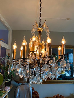 Lampada da parete vintage in ottone e cristallo anni '60, lampada in ottone Regency