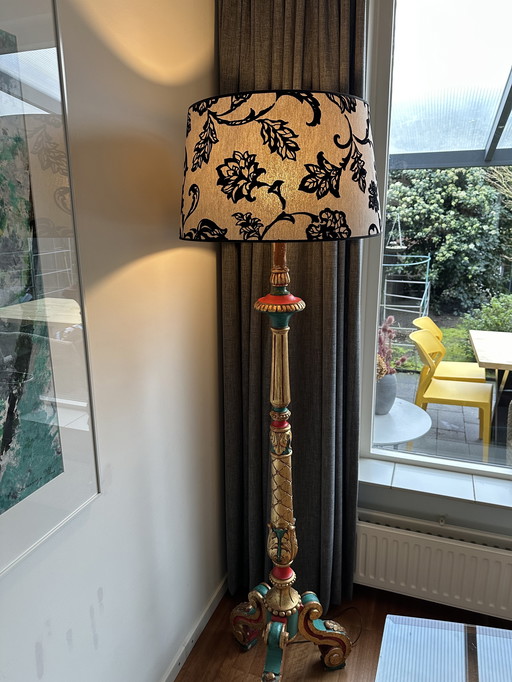 Lampada da terra vintage con piede a sfera