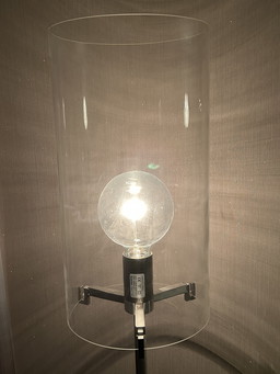 Hala Zeist - lampada da terra - acciaio spazzolato - vetro satinato - postmoderno - anni '80