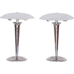Coppia di lampade da tavolo di metà secolo in acciaio cromato e vetro opalino, Germania anni '50