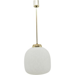 Lampada a sospensione vintage in vetro e metallo bianco, Cecoslovacchia 1960