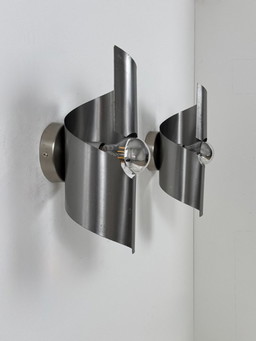 Coppia di applique da parete vintage, in acciaio curvato patinato, Francia, 1970
