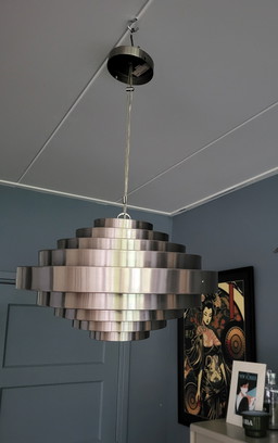 Lampada a sospensione in metallo in stile spaziale.