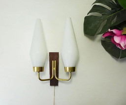 Lampada da parete scandinava - Lampada da parete vintage a 2 bracci anni '50, '60, '70 - Teak, vetro opalino