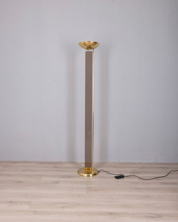 Lampada da terra vintage anni '80 in ottone placcato oro e vetro, disegnata da Relux Milano.Lampada da terra vintage anni '80 in ottone placcato oro e vetro, disegnata da Relux Milano.
