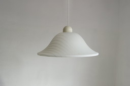 Lampada a sospensione vintage in opalina con pieghe in massiccio marroneLampada a sospensione vintage in opalina con pieghe in massiccio marrone
