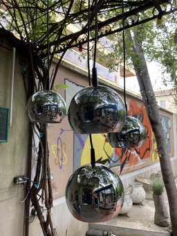 4 Sospensioni in metallo Globe, cromate, anni 70/80