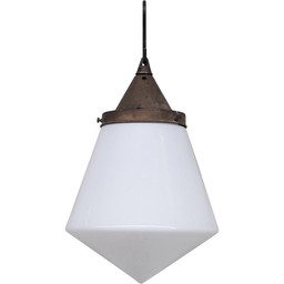 Lampada a sospensione conica in opalino di metà secolo, Francia anni '50