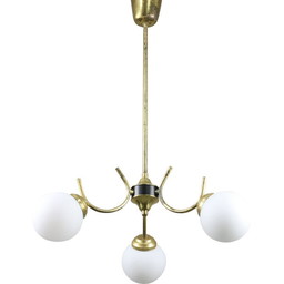 Lampada a sospensione vintage in vetro, gas, ottone e plastica, Cecoslovacchia anni '70