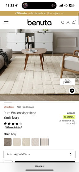 Tappeto in lana Benuta 200x300cm Tappeto Yanis crema avorioTappeto in lana Benuta 200x300cm Tappeto Yanis crema avorio